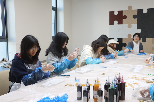 活动现场,同学们对扎染扎结,染色,漂洗等工序的学习,积极制作属于自己独一无二的扎染作品,亲自体验扎染的乐趣,并在活动最后展示了自己精美的作品,每一件作品绚丽的色彩及独特的图案都令人赞叹不已。