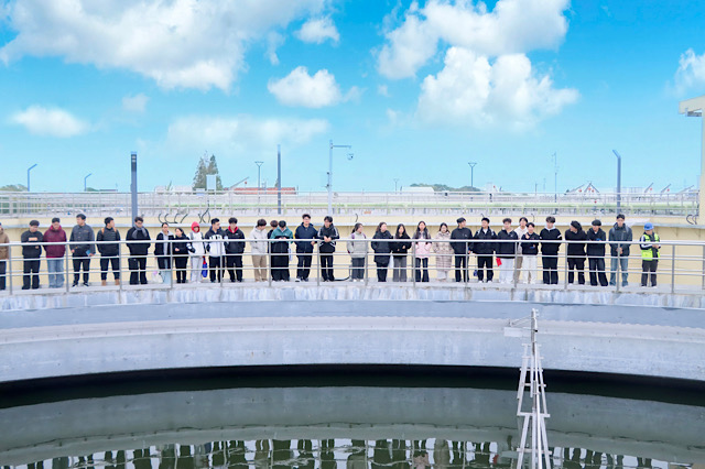 机械工程系奔赴南京南部路桥建设(集团)有限公司,参观了污水处理的各个环节。从污水进厂的初步沉淀,到生物处理,再到深度净化后的达标排放,亲眼目睹污水由浊变清,深度学习了先进的污水处理工艺和环保理念。