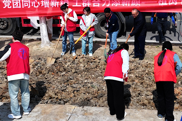春回大地,万物复苏,在这充满生机的季节里,为深入贯彻习近平生态文明思想,积极响应“绿水青山就是金山银山”的号召,迎接第47个植树节的到来,3月11日,党委副书记、副校长赵学洪,机关二支部全体教职工以及学生团员代表齐聚一堂,共同参与“党团同心增新绿 工群合力添新颜”植树节主题党日活动,为校园增添盎然绿意。