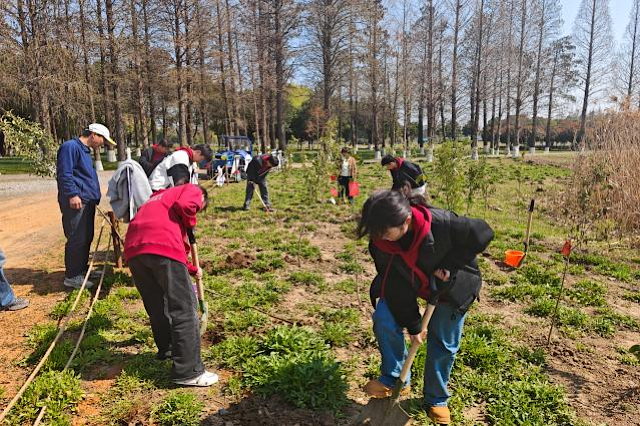 随后,植树活动正式开始。学员们三五成群,分工协作,有的挖坑、有的扶苗、有的培土、有的浇水,现场一片热火朝天的景象。他们小心翼翼地呵护着每一棵树苗,仿佛在为它们种下未来的希望。经过一个多小时的努力,一排排新栽的树苗在春风中摇曳生姿,为水漫城增添了一道亮丽的风景线。
