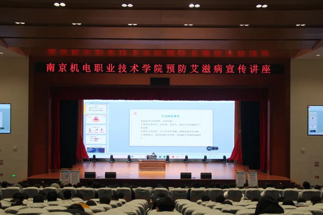2022年12月1日是第35个“世界艾滋病日”,为提高艾滋病防治知识知晓率,培养青年学生文明健康的生活方式。学生工作处于2022年12月9日下午在青春剧场举行世界艾滋病日宣传讲座暨艾滋病防治宣讲活动,高淳区疾控中心主任陈小兰担任本次讲座主讲人,各系400余名学生参加讲座。