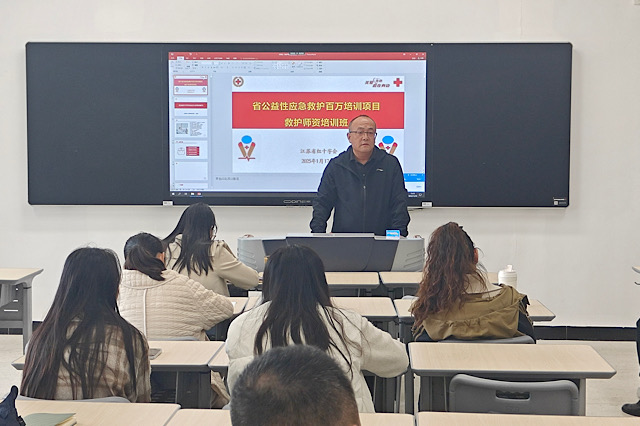 开班仪式上,高淳区红十字会会长沈建军指出,红十字精神所蕴含的人道、博爱、奉献理念与校园安全文化建设高度契合,是推动社会文明进步的重要力量,而应急救护培训正是弘扬这一理念、提升师生防灾避险与自救互救能力的有效载体。他期望学员将所学运用于校园应急救护教学,传播救护理念,让“人人学急救,急救为人人”深入人心。