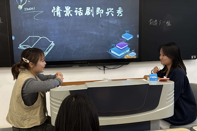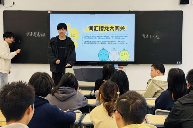 活动开场后,“词汇接龙大闯关”率先点燃全场氛围。两社成员与同学们自由组队、充分融合,围绕词汇首尾衔接的核心规则全力比拼。大家飞速调动词汇储备,组内成员眼神交汇间便能领会思路,有人卡顿时刻同伴轻声引导,成功闯关后全场齐声欢呼,热烈的气息瞬间弥漫整个场地。紧随其后的“情景话剧即兴秀”热度再升,各小组抽取生活化场景后,短时间内便完成分工构思。两社成员主动带动组内节奏,鼓励大家放开自我、大胆表达,台上同学们用自然流畅的英语对话推进剧情,生动的演绎不时引发全场爆笑,每一组表演结束,台下都响起经久不息的掌声,满是认可与喝彩。
