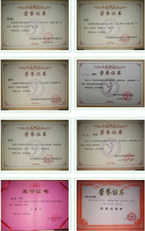 入学以来,荣获第三届全国大学生创新体验竞赛“创新价值”二等奖、2020年第二届全国《机械制图》万人联考江苏省二等奖、开云手机官方版页面登录入口第五届职业生涯规划大赛三等奖、2020江苏省机器人大赛F08室外安防巡逻组江苏省二等奖、院级优秀共青团员、军训优秀学员、2019-2020学年“校园十星”之“学习之星”、“管理之星”提名奖。
