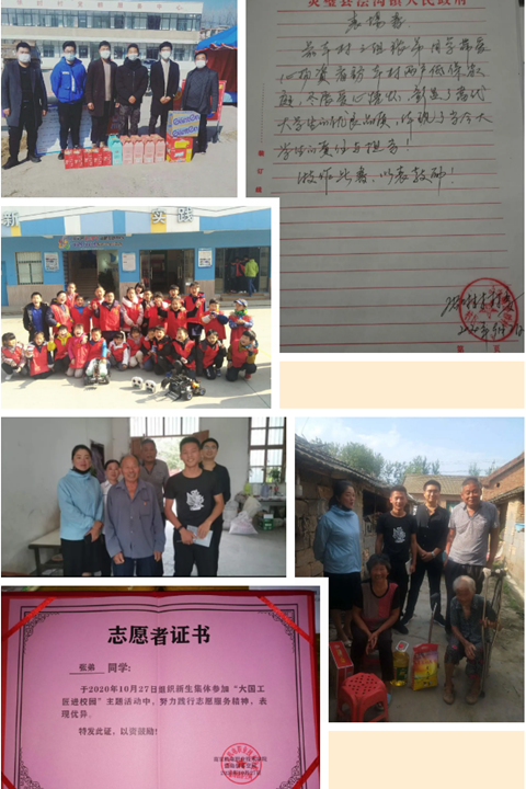 哪有什么岁月静好,只是有人替你负重前行。他深知当今生活的来之不易,成长道路上的他始终不忘初心、心怀感恩!作为学生干部,他在校园里,积极参与志愿服务,多次接待来自友校的学生与教师团体参观学院,为学生和学院服务;在校园外,他始终以一名新时代青年的身份严格要求自己,用自己的实际行动回报社会。2020年的那个初春,当新冠疫情还在肆虐猖狂的时候,他也曾坚守在疫情防控的第一战线,深刻体会到一线工作者的艰辛与危险;疫情稳定之后,他又携带爱心物资,走到贫困家庭家中,切实感受国家政策给贫困家庭带来的翻天覆地的变化。他说:“懂得感恩,方能前行。在我们成长一生中,除了父母之外,还有太多太多为我们曾付出过努力的人。生活可能“很苦”,但我们必须“很甜”,愿岁月静好、万事皆安!”