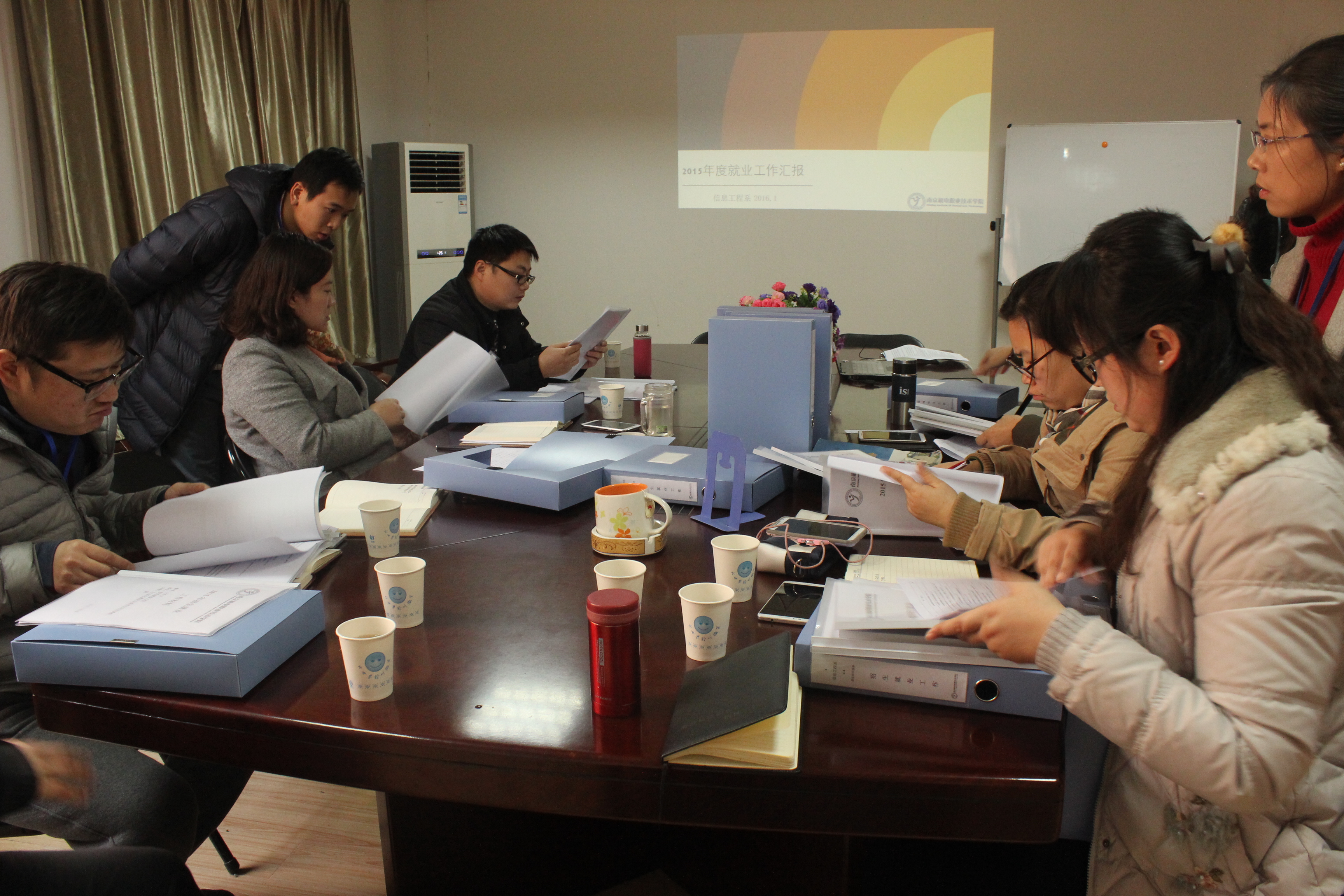 2016年1月8日上午,学生工作处处长姜振宇、招生就业处处长毕盛晟及各系书记、就业干事组成的考核小组一行来到我系会议室进行就业工作二级考核。信息工程系主任王玮、书记胡枫、就业干事陈辰参加了考核会议。