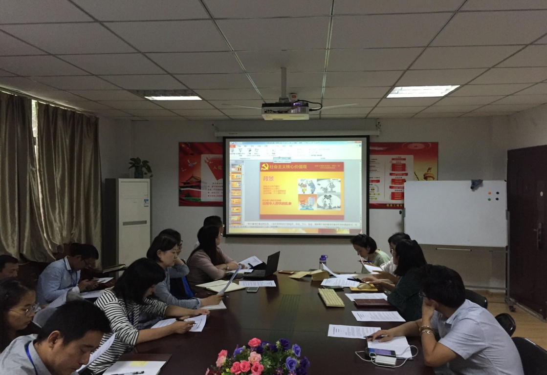 9月28日下午,信息工程系党支部开展主题为《培育和践行社会主义核心价值观》的党课学习活动。党课由支部副书记胡枫同志主讲,包括15名党员在内的全体教职工均参会进行学习。