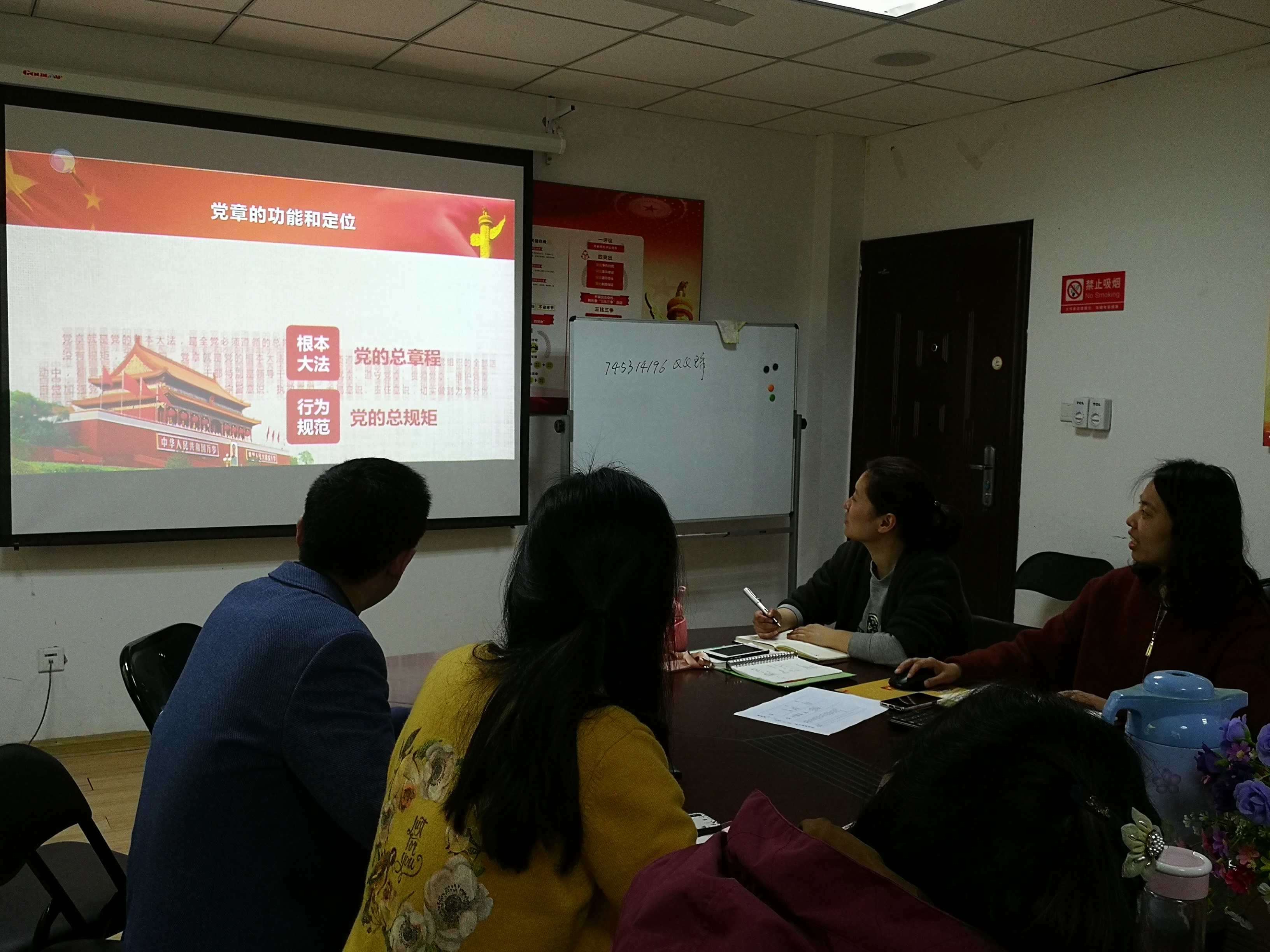 刘娴同志阐明了学习新党章的重要意义,她指出党的十九大通过的党章(修正案),有利于全党更好地学习党章、遵守党章、贯彻党章、维护党章;有利于更好地发挥党章对党的工作和党的建设的指导、规范作用。随后刘娴同志为大家认真解读了党的十九大对党章的十大重要修改,主要内容有:1.习近平新时代中国特色社会主义思想写入党章;2. 中国特色社会主义文化写入党章;3. 实现中华民族伟大复兴的中国梦写入党章;5. 推进国家治理体系和治理能力现代化写入党章;6. 供给侧结构性改革、“绿水青山就是金山银山”写入党章;7. 人类命运共同体、“一带一路”写入党章;8. 全面从严治党、“四个意识”写入党章;9. “党是领导一切的”写入党章;10. 实现巡视全覆盖、推进“两学一做”写入党章。刘娴同志深入浅出地解读了这十大修改的依据和重要意思。她指出,此次党章的修订充分体现了马克思主义中国化最新成果,充分体现了党的十八大以来以习近平同志为核心的党中央提出的治国理政新理念新思想新战略,充分体现了坚持和加强党的领导、全面从严治党的新鲜经验。