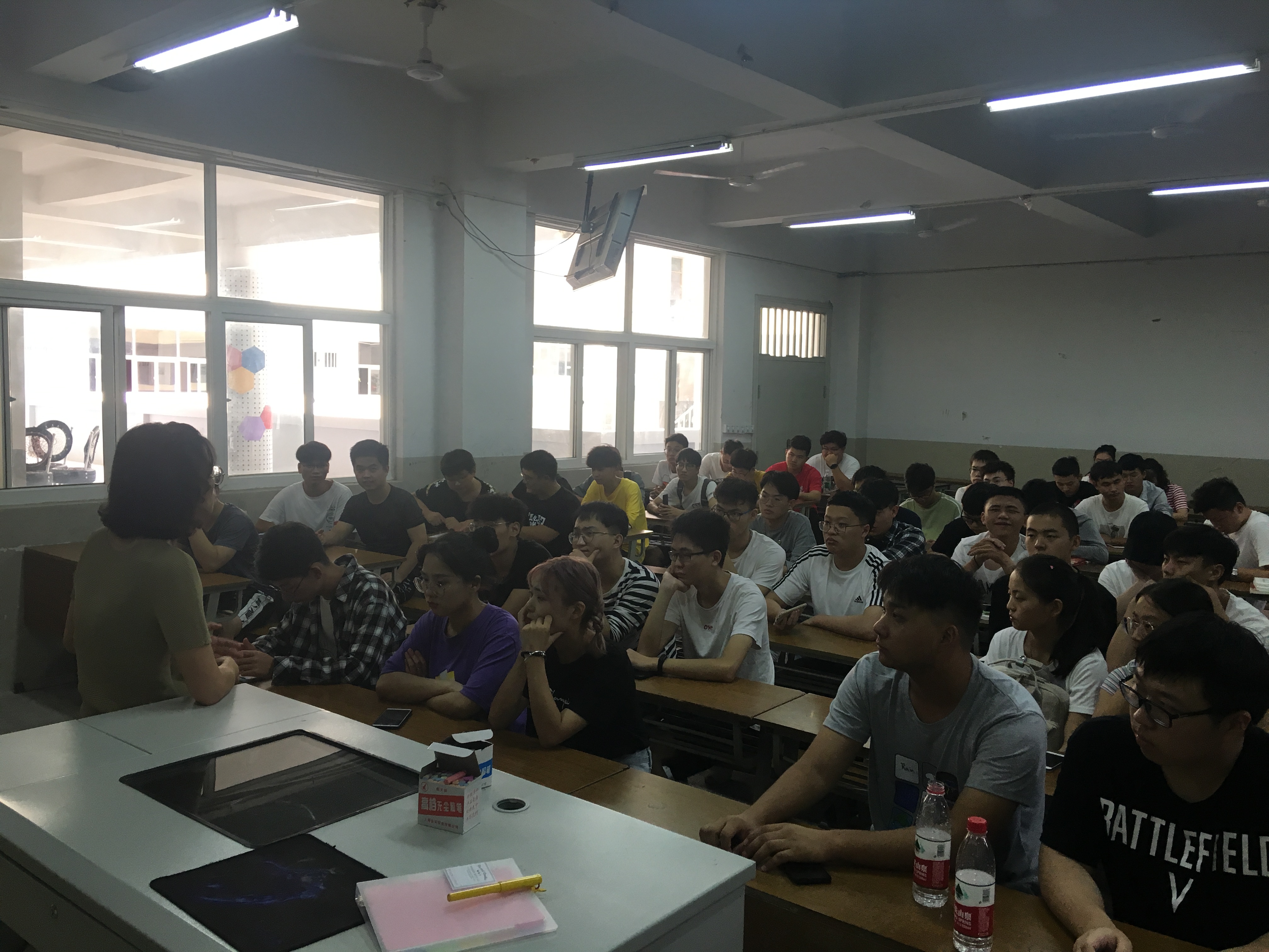 之后,胡枫书记在明确了各位志愿者的各自班次和任务之后,为志愿者们讲解本次迎新工作的意义、重要性以及要点。她表示志愿者们一定要在迎新当天按时到达各自的工作地点准时开展工作;其次,志愿者们的风貌代表着学院系部的风貌,她希望志愿者们在工作时一定要充满正能量,将我系精神风貌用正确的方式表现出来,展现出南京机电人的热情、周到。