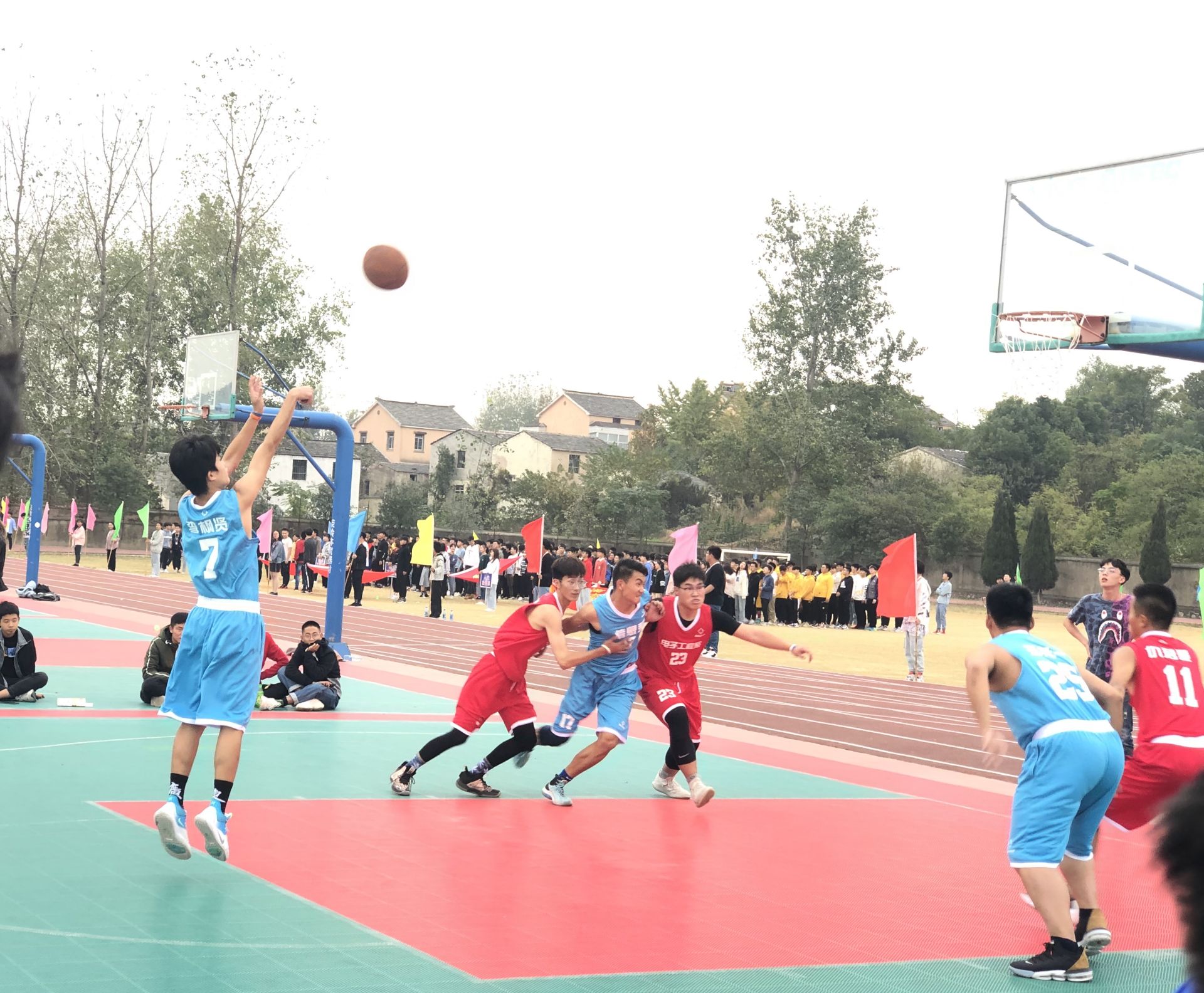 为了促进各系之间的交流,提高大学生的综合素质,增强团队精神,2019年10月22号下午1点30分,由南京机电主办,信息系学生会承办的“登峰杯”篮球赛在篮球场举行。