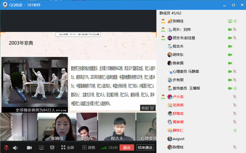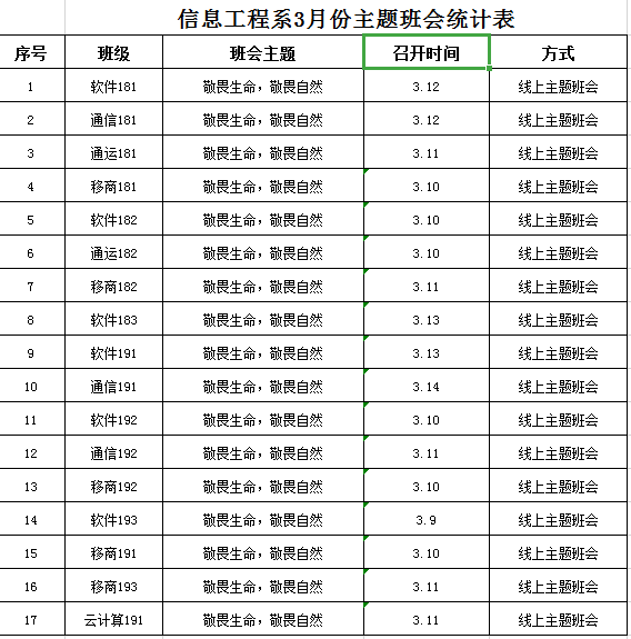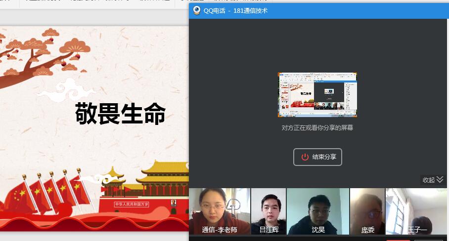 为贯彻落实学院“停课不停学”期间相关工作要求,切实做好学生的疫情防控知识普及和思想政治教育引领,3月9日至14日,信息工程系辅导员利用QQ平台视频电话功能,对全系18级和19级学生,分批次、有序召开“敬畏生命、敬畏科学、敬畏自然”的线上主题班会。