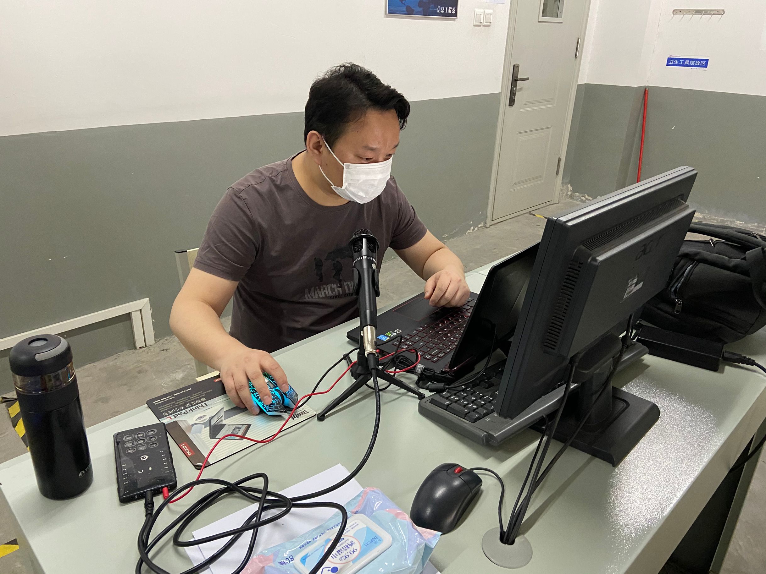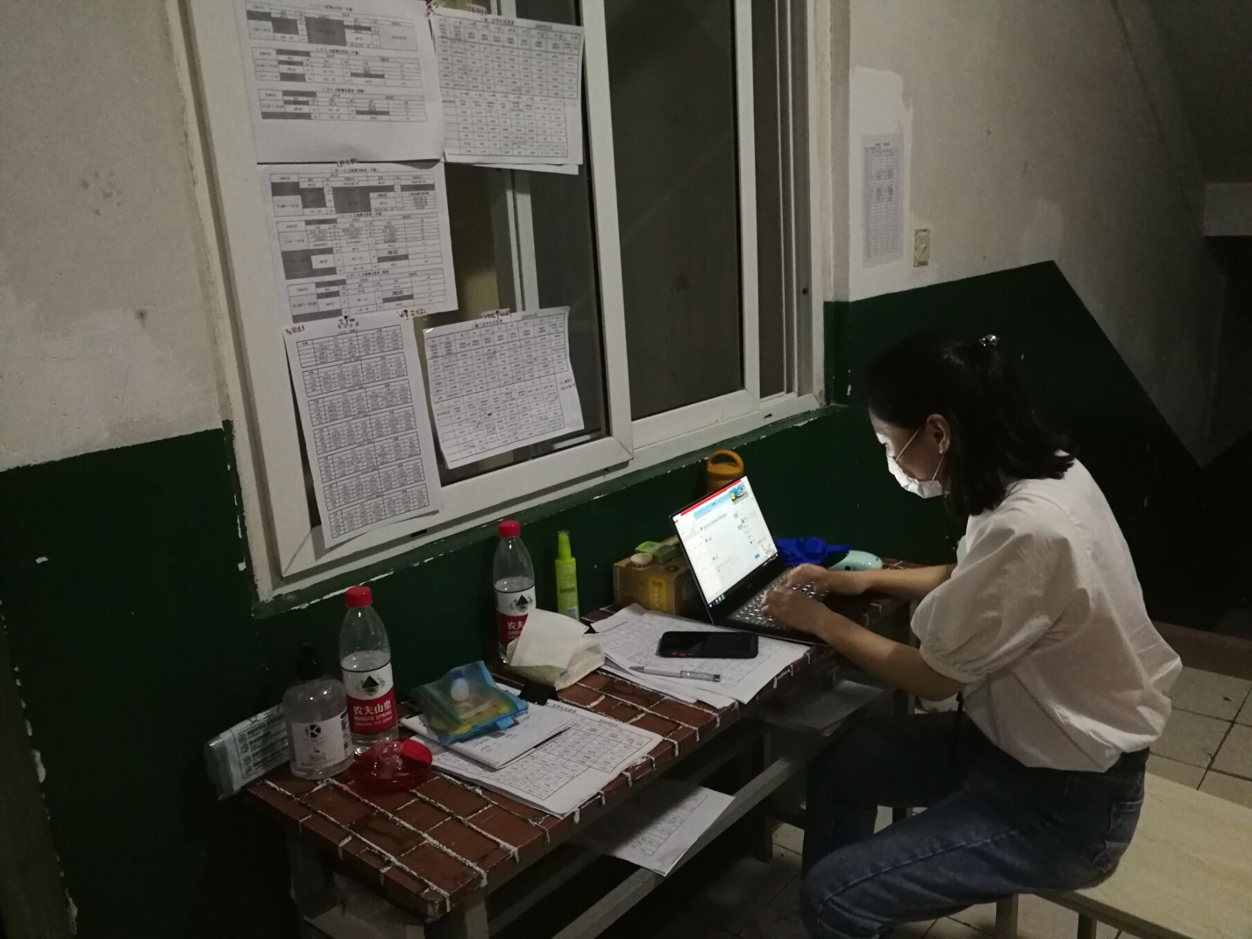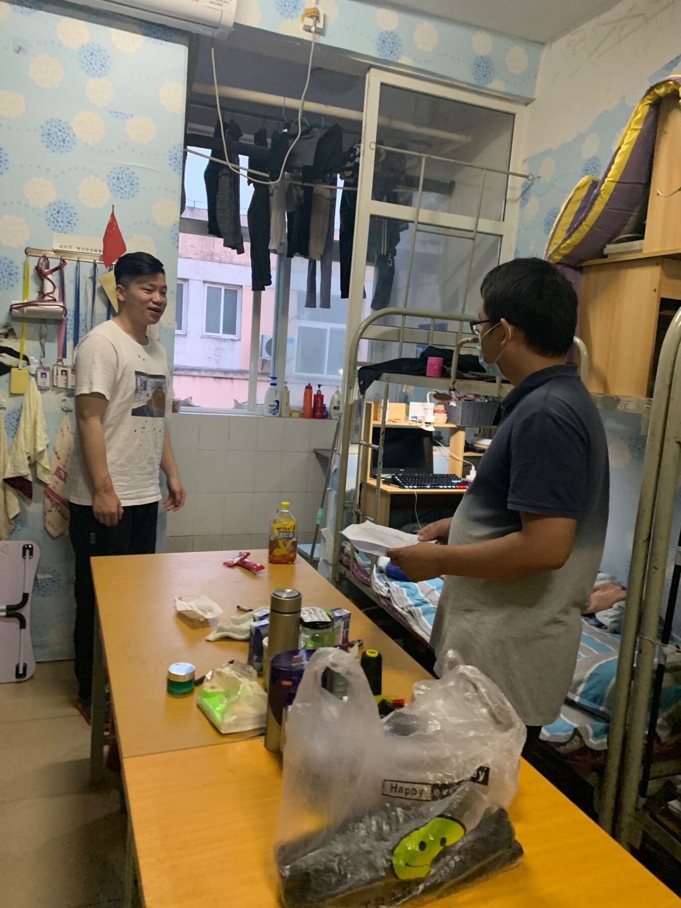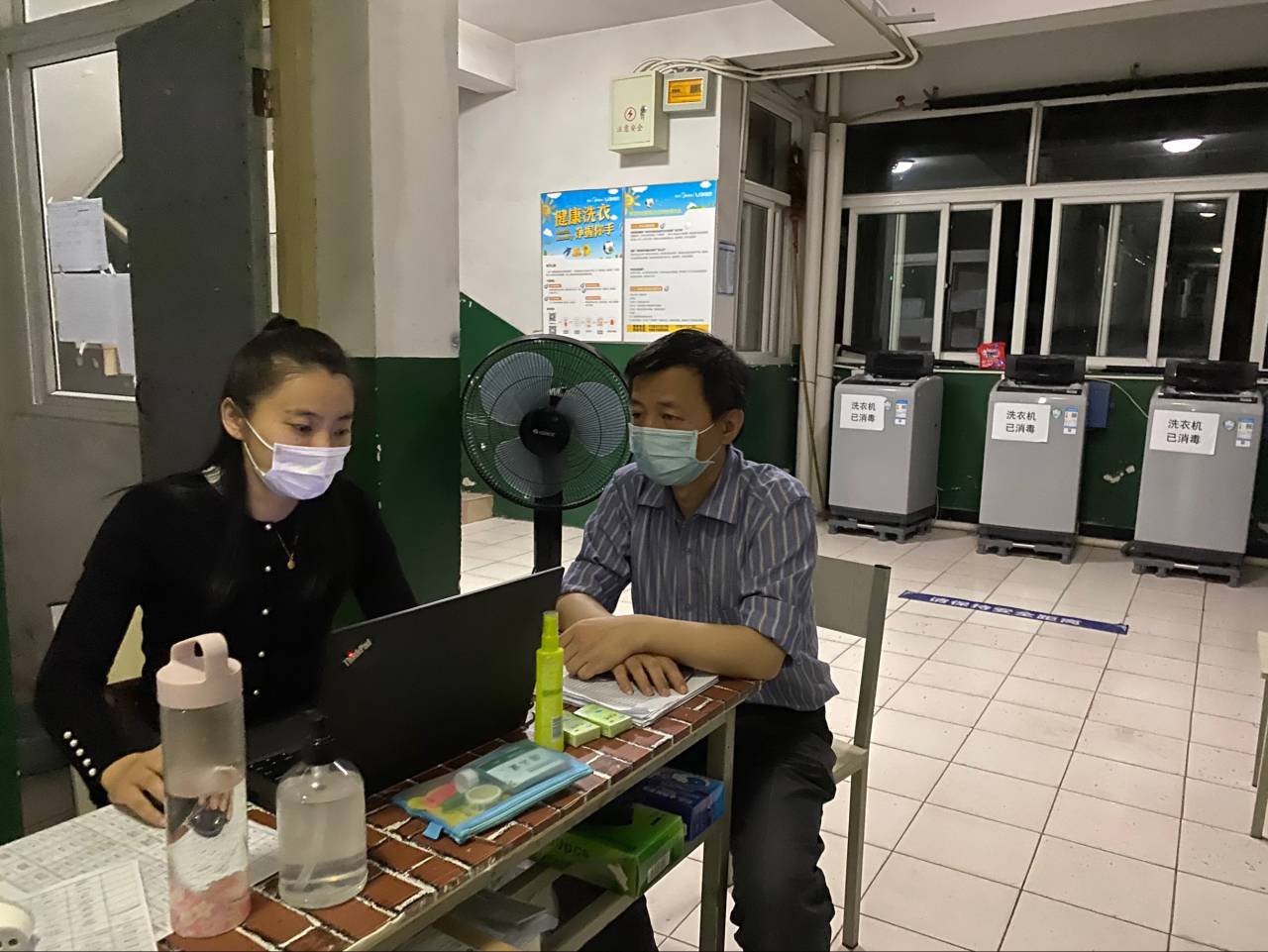 穿过学生公寓门口的测温门,值班老师早已在宿舍门口等候了。