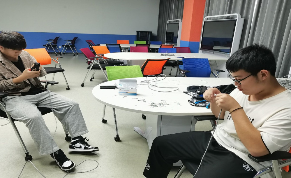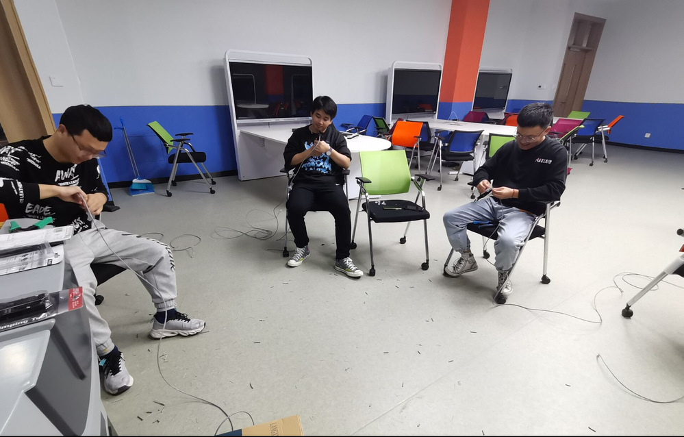 首先,社团成员集合签到,老师指导和示范做网线的相关要点及注意事项:准备好网线、压线钳、网线测试仪等使用工具具体步骤,全体成员按照要求开始网线制作。制作过程中,同学们非常认真,做好每根网线之后都进行测试,虽然失败了很多次,但是大家都没有放弃。制作好所有网线后就开始了桌位的布线、交换机的安装以及绑线。所有线路布置完成后,我们将教室打扫干净,保持整洁,桌椅整齐。