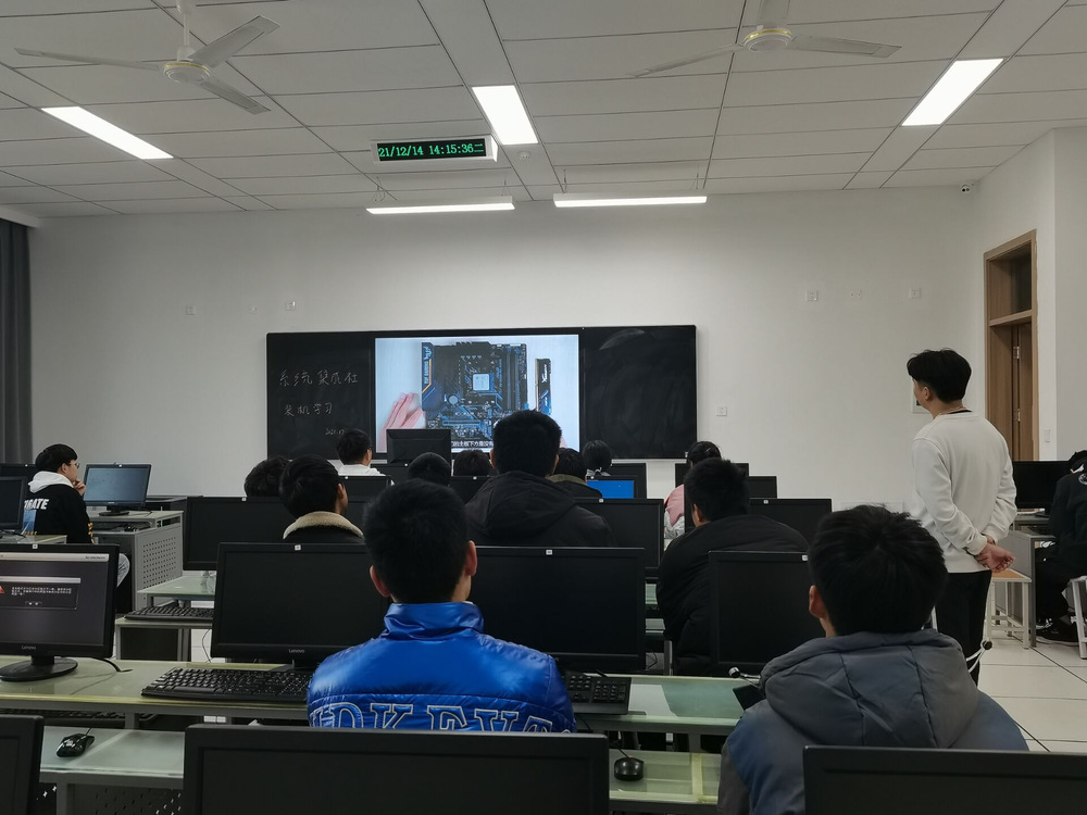 随后,对社团成员进行装机知识学习,学习部部长准备好了相关视频,社团成员一同观看了装机视频,学习了主机的各个组件,以及它们如何安装,也了解了市面上相关组件的信息。观看结束,社长对常见的装机问题进行了详细的讲解。