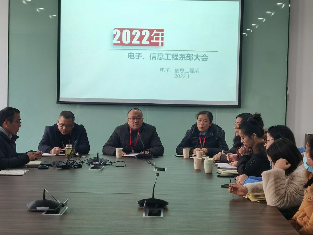 2022年1月12日下午,在育德楼210办公室召开系部期末会议,副院长赵学洪、系部主任王玮及电子系和信息系全体教职工参加了本次会议,会议由王玮主任主持。