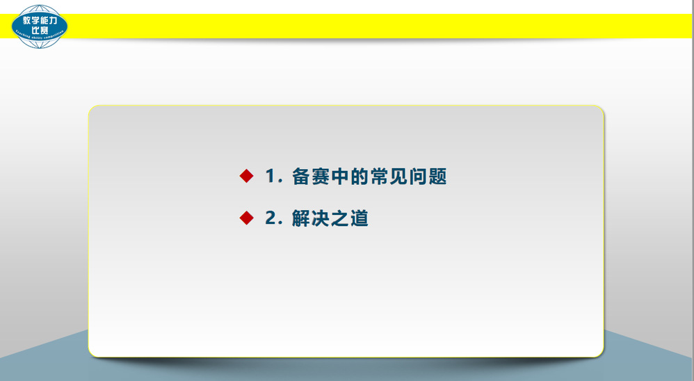 本次会议主要围绕备赛中的常见的问题和解决之道两个议题展开。教学能力比赛不同于传统的教学,侧重点各有不同。参赛教师没有对比赛进行深入的研究,按照传统的方法进行备赛,很难有成绩的突破。通过归纳总结备赛中常见的问题主要有:第一、解决方案空乏:课程与教学改革不到位,将教学中原有的问题带入比赛中,未提供实现学生更好的学习方案,未能明确“解决什么问题、解决方案、落实情况、效果如何、还需改进什么。”第二、教学法知识缺乏:对服务学生有效学习需要做出的各项决策不清楚是什么、为什么、怎么做,教学法知识欠缺,教学素养不足,单凭经验进行教学设计与实施,教学决策不够合理,教学实施不够有效。第三、单凭经验备赛:单凭经验进行备赛,不掌握各项材料、各个环节的备赛要点。