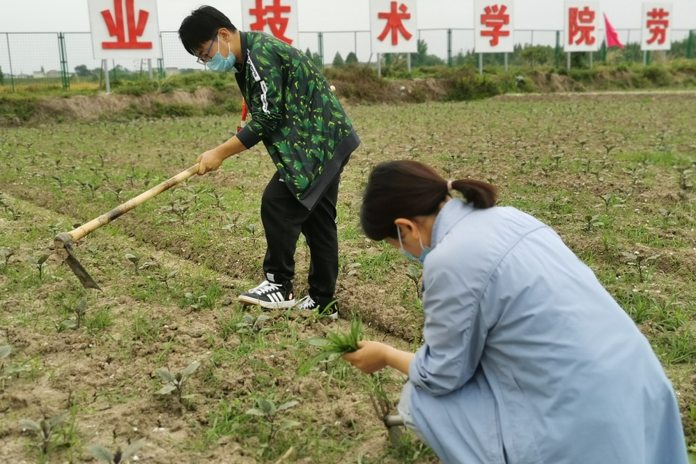 揭牌仪式结束后,信息工程系党支部的老师们参加了劳动实践活动,实践基地的蔬菜园里,前期已经播种下了茄子、黄瓜等蔬菜的种子,一眼看去已经初泛青绿,长势喜人,但也夹杂着一些野草,一声令下,同志们干劲十足,撸起袖子下地干活,除草的除草、翻地的翻地,活动现场呈现出热火朝天的劳动景象。