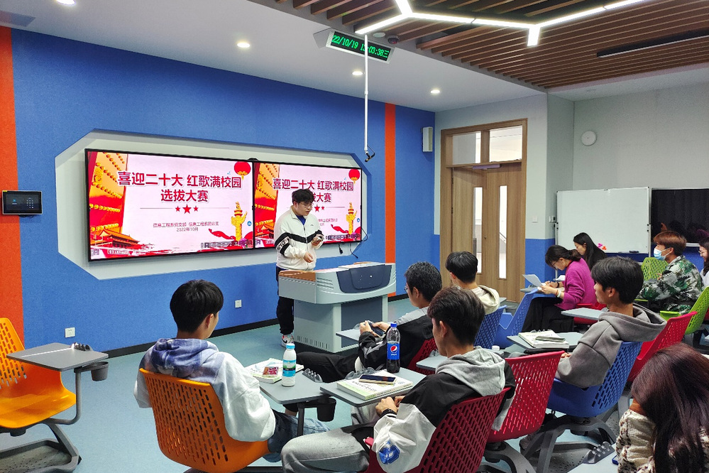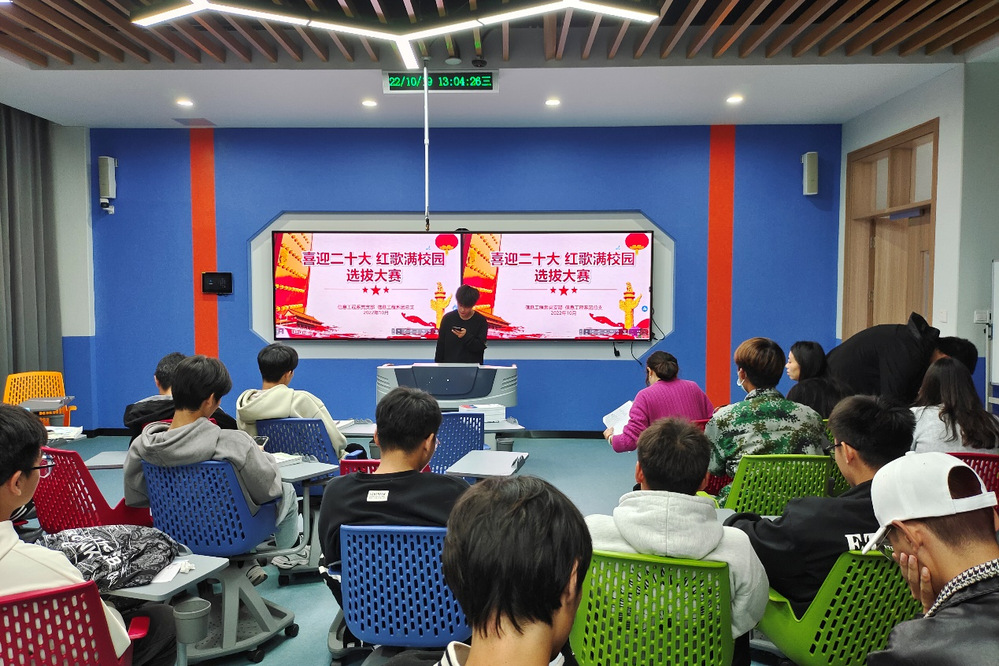 一首经典歌曲,记录一段峥嵘岁月;一首经典歌曲,象征一面光辉旗帜。为弘扬爱国精神,重温红色经典,喜迎党的二十大胜利召开,丰富校园文化生活,我院信息工程系于2022年10月19日中午,在博学楼411举办了“喜迎党的二十大 经典满校园”选拔赛,本次活动由信息工程系党支部、信息工程系团总支组织。