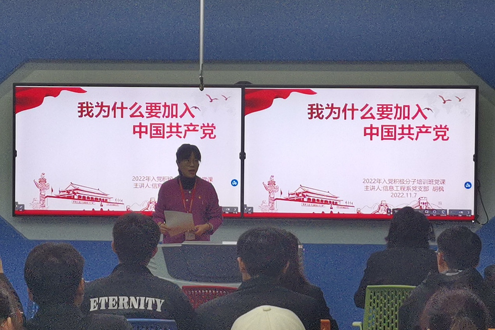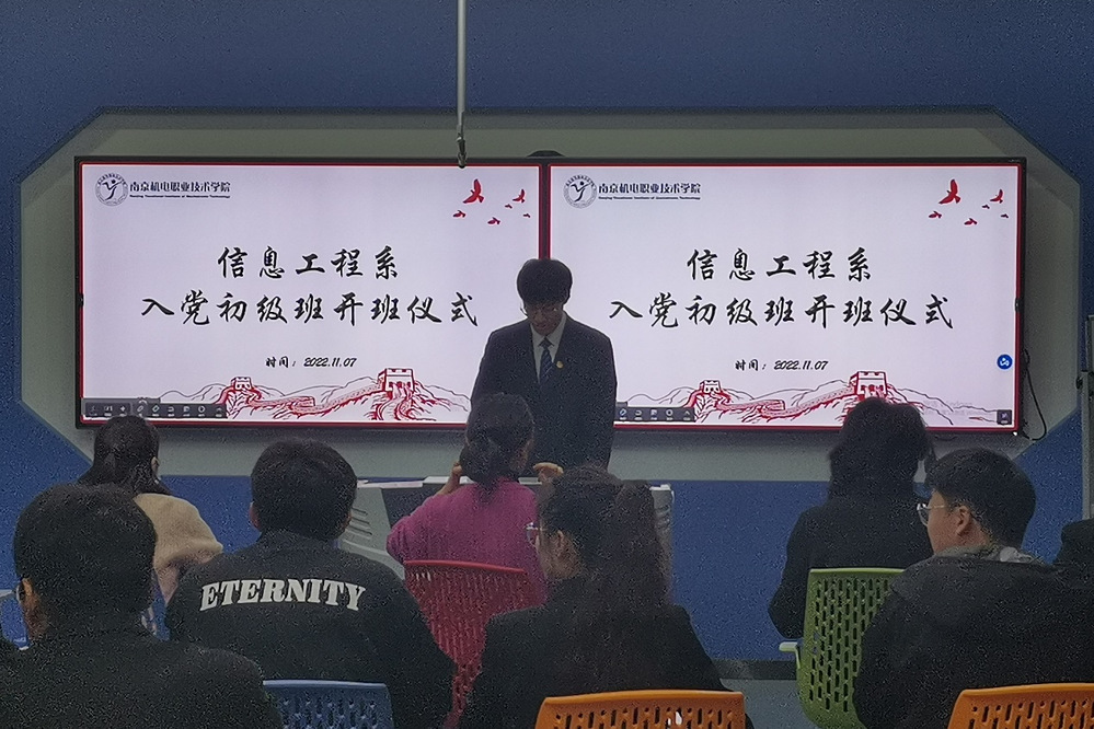 为切实做好入党积极分子的培养教育工作,提高入党积极分子的思想政治素质,端正入党动机,切实把好党员队伍的“入口关”和“质量关”, 11月7日中午在博学楼411,开云手机官方版页面登录入口信息工程系入党积极分子初级培训班正式开班。信息工程系党支部书记胡枫老师、信息工程系党支部组织委员俞宝莹老师、信息工程系党支部纪检委员刘娴老师、信息工程系党支部宣传委员卞志勇老师出席开班仪式、系部各班级入党积极分子参加此次培训,开班仪式由信息工程系团总支秘书长王重重主持。