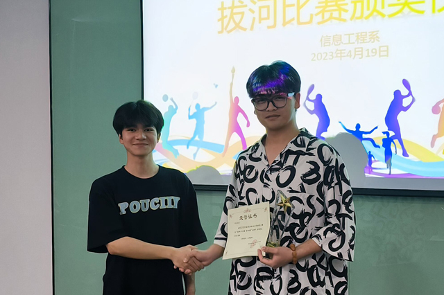 经过紧张有序激烈的角逐,拔河比赛活动取得圆满成功。学生会主席李想同学宣读了本次比赛的获奖情况,为获奖班级颁发奖状及奖杯,同时总结出本次拔河比赛创造的三个之“最”——参赛班级最多,比赛场次最多,精神风貌最亮。他表示,拔河比赛比的是集体的默契配合,赛的是班级的团结和谐。