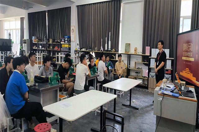 王国珍主任从近几十年我国航天事业的发展、北斗卫星导航系统成功构建,再到我校(八一08)卫星发射前的前期准备,结合了我校卫星专业目前所处的大环境做出了细致的讲解。他要求同学们脚踏实地,学习好专业知识,继承发扬老一辈航天精神,为国家航天事业的发展增砖添瓦,带领我校卫星专业走向更高的领域。