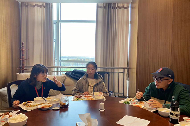 为更好地落实立德树人根本任务,关心各民族学生的学习和生活情况,促进各民族学生文化交流,铸牢中华民族共同体意识。11月30日中午,信息工程系党支部书记胡枫、系部关心下一代工作委员会成员、退休党员干部王玮和学工干事郝麒,在教职工食堂二楼举办了一场以“团结民族心,共筑青春梦”为主题的阳光午餐会。