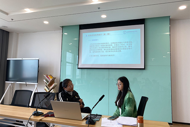 谈心谈话主要考察辅导员对理论知识的运用及实际沟通技巧,要有亲和力,懂得与学生共情。因此,本次研讨也着重强调了辅导员在与学生交流时的态度和语气,以及如何倾听和理解学生内心的真实感受,最终给出学生合理化的建议,帮助学生妥善解决问题。