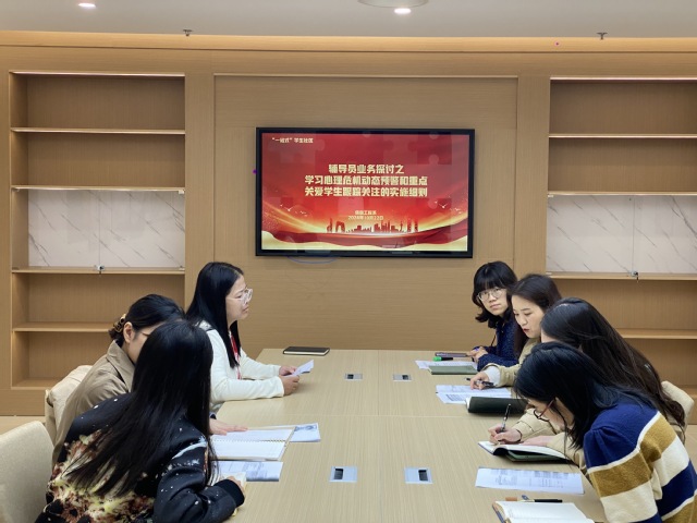 为进一步提升辅导员队伍在心理危机干预和重点关爱学生跟踪关注方面的专业能力,信息工程系于10月22日在“一站式”学生社区开展业务研讨会。此次研讨会由心理负责人王林林老师主讲,信息工程系党支部书记胡枫及全体专职辅导员参加。通过本次深入学习和探讨,落实相关实施细则,确保学生的心理健康和安全。