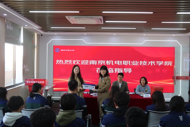 宿迁中等专业学校对开云手机官方版页面登录入口老师的到访给予了热情的接待。活动开始,在宿迁中专电子商务学院张举院长的带领下,胡枫一行人参观了京东电商双创实践基地、京东运营中心和京东数字直播基地,了解京东的运营模式及其在电子商务领域的最新动态,参观期间,双方就人才培养进行了深入的交流与探讨。