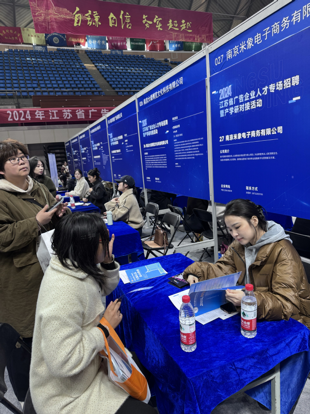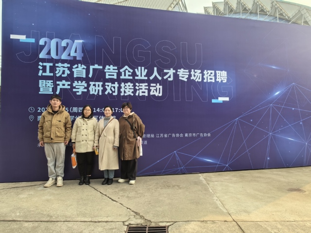 为助力信息工程系学子了解就业市场趋势,提升就业能力,实现高质量就业,12月5日,信息工程系就业干事陈莉娟和辅导员俞宝莹一同前往江苏省广告企业人才专场招聘暨产学研对接活动。本次活动由江苏省市场监督管理局主办,江苏省招生就业指导中心、南京市市场监督管理局、江苏省广告协会、南京市广告协会协办,南京财经大学承办。