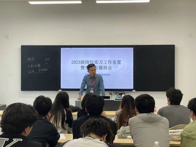 在班会上,党委委员、党委工作部副部长高水冕发表讲话,从职业发展的长远角度,深刻强调了实习对学生的重要意义,鼓励同学们以积极的态度认真准备,充分利用实习机会锻炼自我、积累经验,为未来的职业道路打下坚实基础。