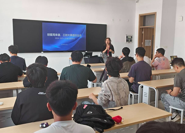 在系办公室统一组织下,各专业班主任分别从大赛主题、大赛时间、大赛形式、赛程设置、大赛要求等方面向同学们做了介绍。同时,提醒学生,本次三创大赛的报名工作,结合各班创客活动开展,参赛作品需提交项目推荐表、项目汇总表,创新制作组需要实物展示;创意设计组需要创意设计方案及效果图;软件开发类别需要软件演示(源代码、模型建模效果图、视频录像);“AI+教育”场景应用类别需要有作品设计方案及展示视频;创业项目需要有运营证明材料。