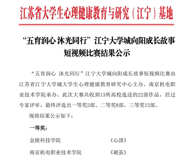 为了充分发挥榜样示范作用,借助心理短视频形式,鼓励学生讲好青春励志故事,激发朋辈效应,激励学生做有理想、敢担当、能吃苦、肯奋斗的新时代青年。在“五育润心 沐光同行”江宁大学城向阳成长故事短视频比赛中,信息工程系递交的短视频——《破茧》脱颖而出,一举摘得一等奖桂冠,其细腻的叙事与深刻的主题引发广泛关注。