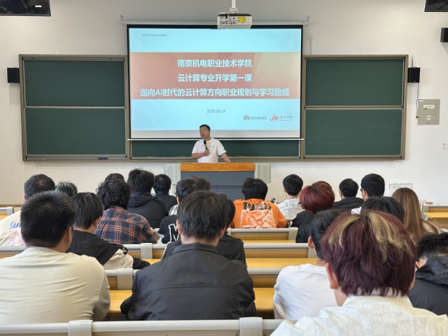 10月14日,江苏万和系统集成有限公司总经理苏正坤受邀为云计算技术应用专业2025级新生,带来“新生第一课”专题讲座,聚焦专业认知、行业前景及 AI 融合,贴合高职生技能成长路径答疑。