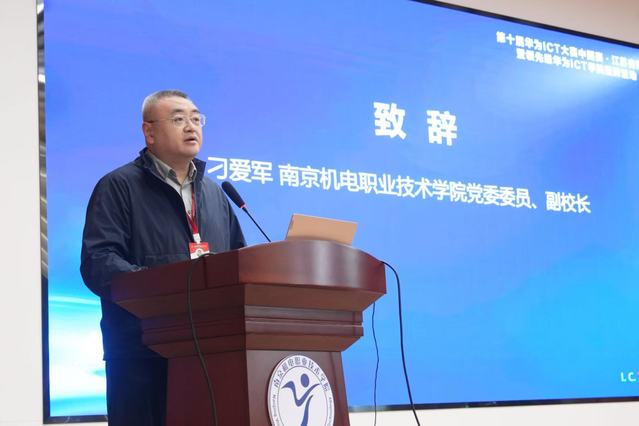 活动伊始,主持人开场,介绍活动背景与到场嘉宾。随后,学校党委委员、副校长刁爱军致辞。他对华为公司及各企业嘉宾的到来表示热烈欢迎,感谢各方长期以来对学校发展的支持,并回顾了学校在ICT教育领域取得的成果。他提到,学校从2012年加入“华为网络技术学院”,到2021年签约华为ICT学院,再到2023年晋升“优选级”、2025年跻身“领先级”,五年内实现两次关键跨越,成为全国仅十余家获此殊荣的高职院校之一。同时,他鼓励在场学生珍惜机遇,积极参与ICT学院课程与华为ICT大赛,成长为符合产业需求的高素质技术技能人才。