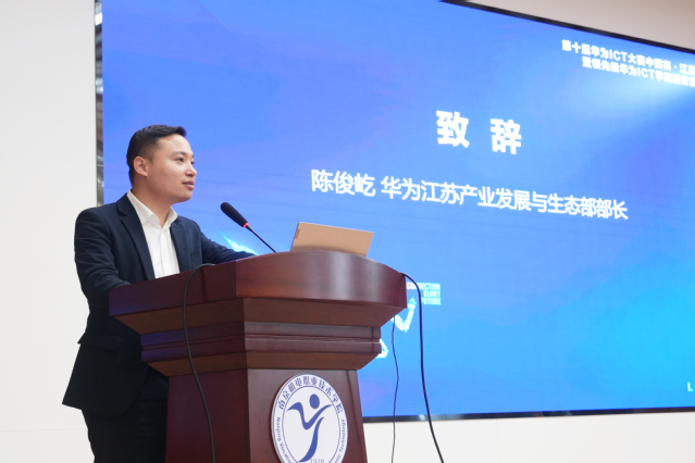 紧接着,华为江苏产业发展与生态部部长陈俊屹致辞。他肯定了开云手机官方版页面登录入口在ICT人才培养方面的成效,强调华为将持续发挥技术与生态优势,深化与学校的合作,为职业教育注入动力,助力青年学子实现职业成长。