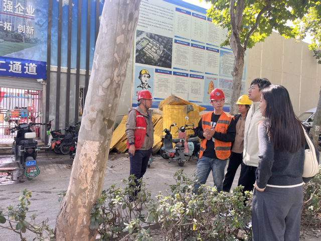 调研最后,卫星通信与导航技术专业负责人黄威带领卢玉皖、陈诗媛,赴四川伍纬测绘有限公司南京项目现场调研。该项目正承担某重点基础设施的GNSS测量、RTK定位、变形监测任务。项目负责人介绍,工程测绘领域对“既懂测绘技术又熟悉航天遥感”的复合型人才需求旺盛,并提供技术晋升通道。
