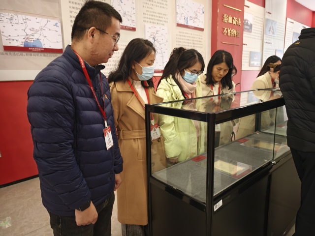 活动特别邀请马克思主义学院高杉、高晶晶两位老师担任主讲。在两位老师的引领下,党员们依次参观了研学基地的历史图片展区与实物展陈区。一张张泛黄的老照片、一件件承载着岁月痕迹的革命文物,生动再现了新四军将士浴血奋战、英勇抗敌的光辉历程。老师们结合丰富的史料,详细讲述了新四军在苏南地区开展抗日游击战争、建立抗日根据地、团结群众共同抗敌的动人故事,让党员们深刻感悟到“铁军精神”中蕴含的忠诚信念、严明纪律、顽强作风和为民情怀。
