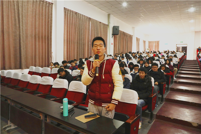 在交流提问环节,同学们踊跃提问,两位大赛选手热情细致地给予一一解答,在场学生认真聆听记录,不时报以热烈掌声。