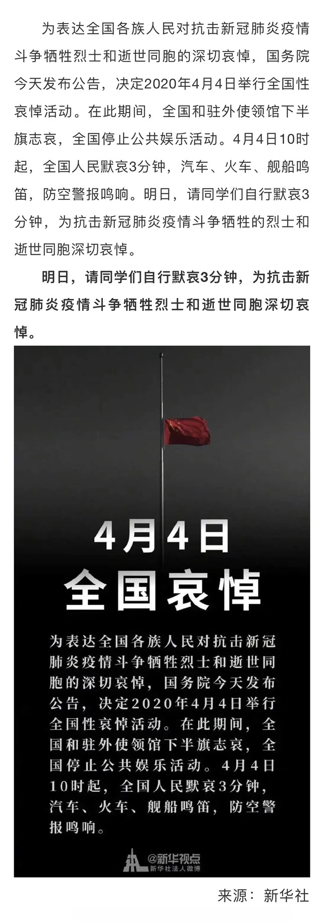 明天,全国哀悼|10时起,全国人民默哀3分钟