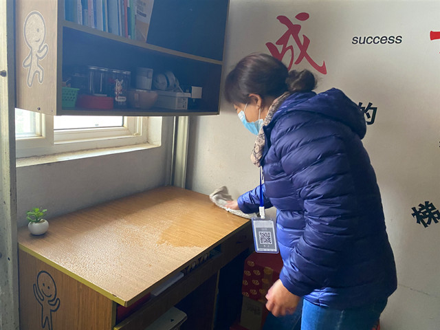 面对可能会出现的,各种“不明生物”和潮湿的环境,朴实善良积极温暖的16位“妈妈”们,历时两周起早贪黑对568间宿舍按照星级宿舍标准毒杀菌全方位无死角清扫,只为等你回家。