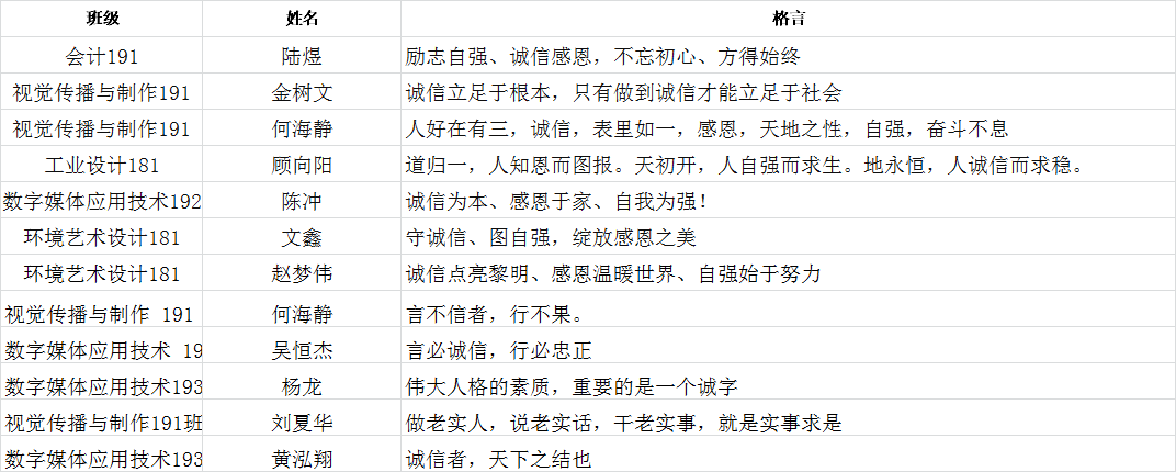 此次诚信教育活动,提高了同学们的征信意识、金融意识、风险意识、法律意识,引导树立正确的消费观、荣辱观、价值观,努力培养德智体美劳全面发展的社会主义建设者和接班人。