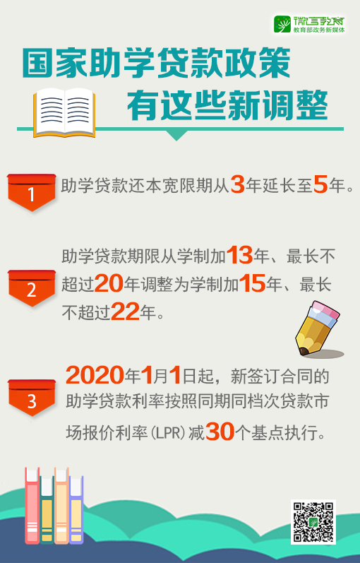 二是助学贷款期限从学制加13年、最长不超过20年调整为学制加15年、最长不超过22年。