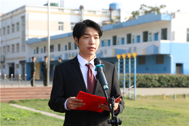 院学生会主席戚彬盛同学作国旗下的讲话。他对建国71周年和中秋佳节表示了祝福,鼓励同学们要秉承“知行合一,自强不息”的校训,勤于钻研,勇于开拓,书写祖国新的篇章。戚彬盛同学的话语掷地有声、铿锵有力,彰显着激情澎湃、热情高昂的斗志和信心,极大激发了同学们的爱国热情,使同学们更加深刻地认识到自己所肩负的使命。