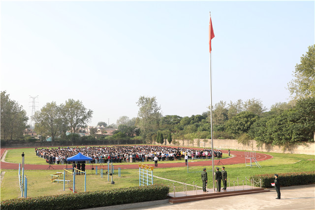 上午8时整,50名国旗班成员带着新中国成立71周年的使命感、荣誉感与骄傲感,以昂首挺拔的军姿、坚定的步伐、整齐划一的动作,护卫着鲜红的国旗迈向升旗台。随着一声“升国旗,奏唱国歌”,在全场师生的注目下,五星红旗冉冉升起,迎风飘扬,师生们深情地注视着高扬的五星红旗,用真挚之情表达对祖国最美好的祝福。