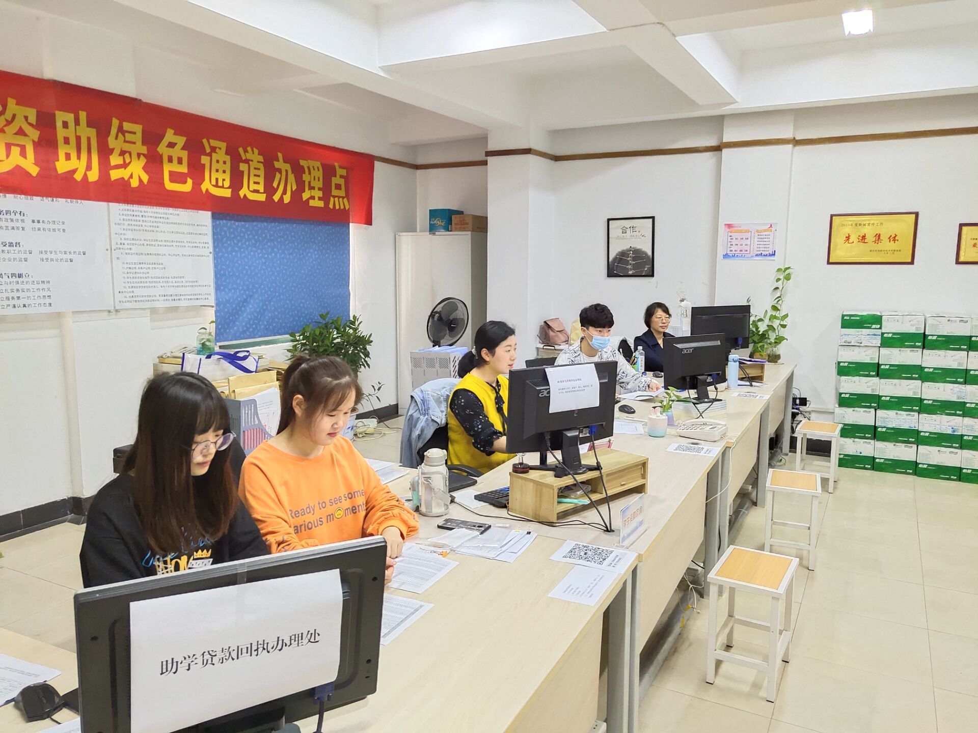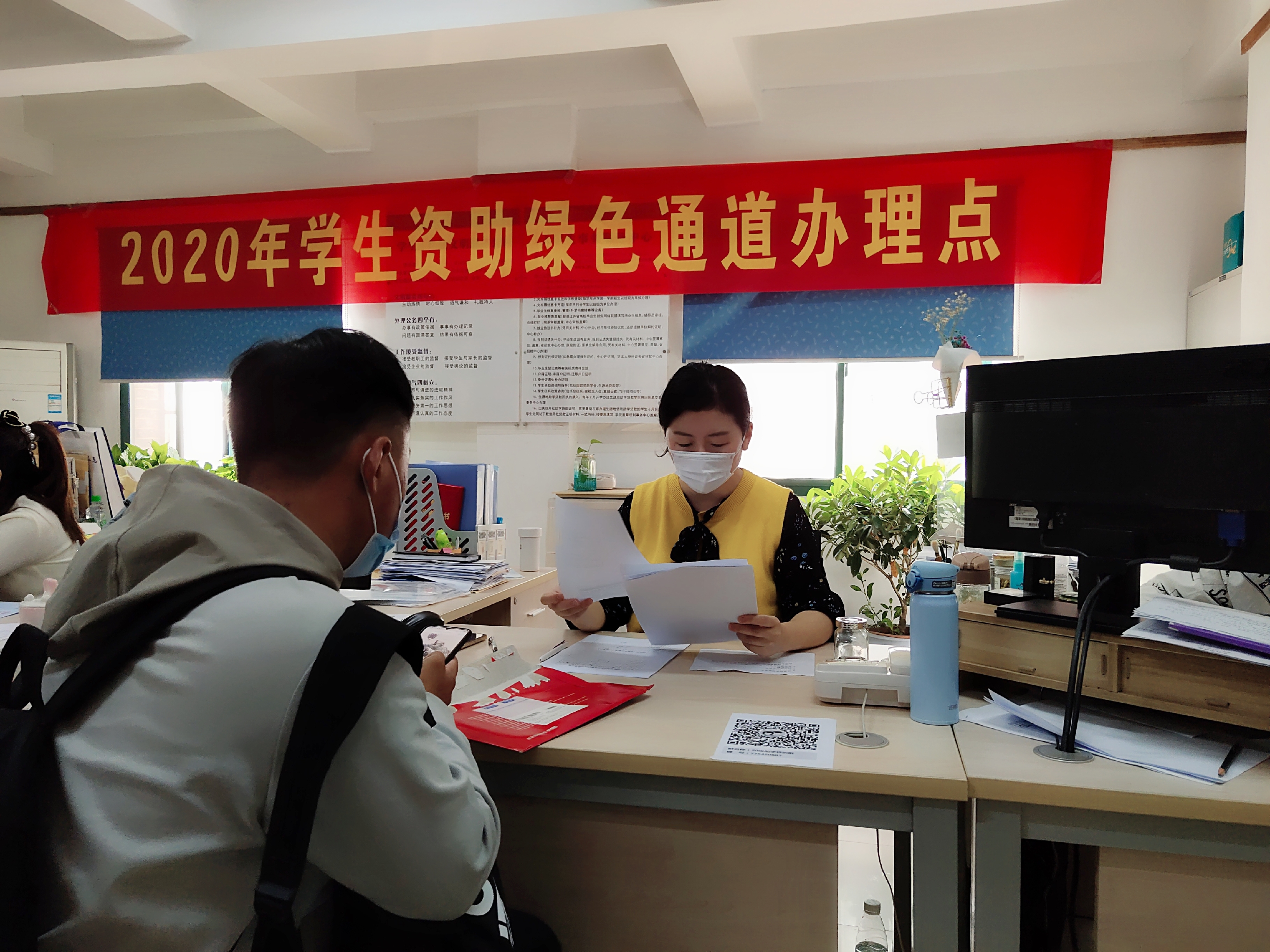 10月10日是我院2020级新生入学报到的第一天,在学院党委和行政的正确领导下,学工处精心组织,周密安排,在勤政楼一楼事务大厅开设“绿色通道”一站式服务点,确保每一名家庭经济困难学生顺利入学。“绿色通道”办理点主要为家庭经济困难学生办理缓缴学费、生源地助学贷款回执录入、特困新生车费报销、伙食补贴,残疾学生学费减免登记等手续。
