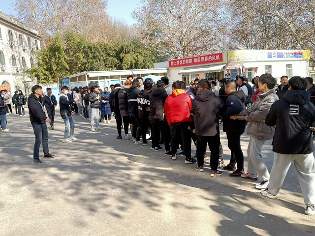 为了提高我院学生的素质文化,增强其团结协作能力,2020年12月17日,第七届宿舍文化节以拔河比赛的方式在二栋宿舍广场拉开序幕。此次的拔河比赛采用了淘汰制与循环制相结合的形式,以宿舍楼为单位形成比赛队伍,进行两两对抗。