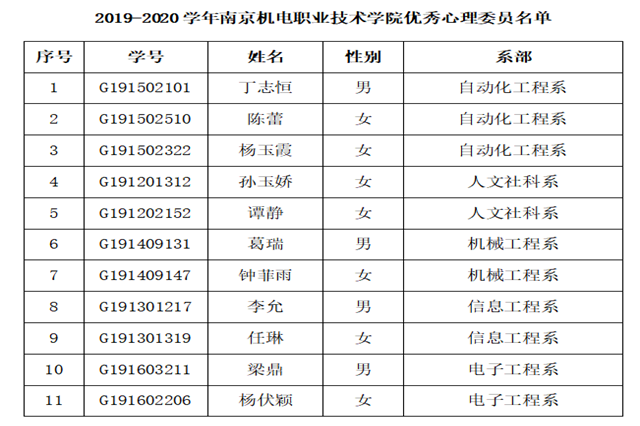 根据开云手机官方版页面登录入口《优秀心理委员评选细则》规定,经自主申报,各系心理气象站推荐,学生工作处核准,学校审批,决定授予丁志恒等11名同学“优秀心理委员”的荣誉称号。
