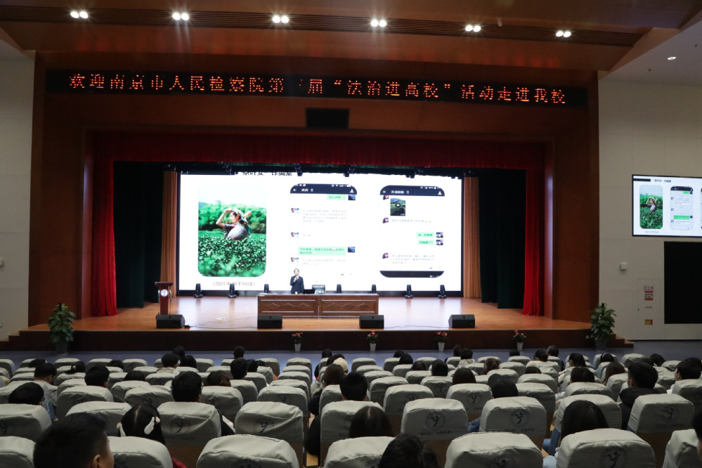 高淳区青联委员会副主席、高淳区检察院第三检察部书记员陈思洁以案释法,为我校同学们带来一堂生动的法治课《花样“网事”》。陈检察官用个性化的宣讲方式,围绕“网络交友”、“网络诈骗”“网络兼职”等贴近学生实际的真实案例,引导学生警惕网络诈骗,提高网络安全意识 。检察官现场分发法治宣传册,与我校学生深入互动交流,帮助学生充分认识学法、守法的重要性,鼓励学生积极参与法治校园建设。