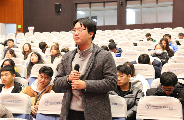 黄博结合自身经验,从制定明确的计划、全面发展、积极合作、勇于表达四个方面展开了分享。他告诫同学们应当制定明确的生活学习计划、脚踏实地的执行,全面发展应当从擅长做的或喜欢做的开始;随后,他向大家进一步的讲解了在专利申请方面可以通过小组合作的方式,大家集思广益,各取所长,使得广大同学对专利的撰写有了进一步的了解;最后,他希望同学们能抓住每一次自我展示的机会,表达能力绝非一日之功,表达是一个日积月累的过程,到顶岗实习时,表达的是否清晰、过程是否紧张都有可能影响你的面试结果。